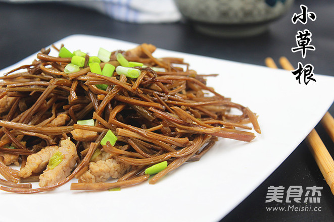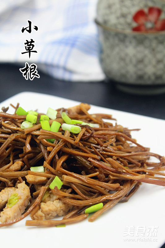 8.下地瓜梗翻炒,加盐,胡椒粉