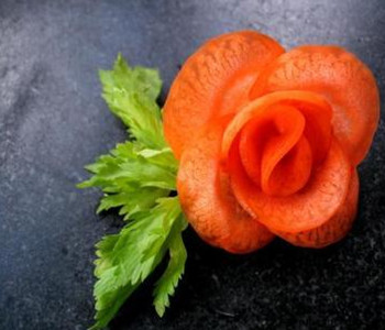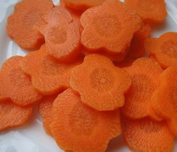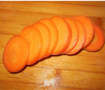 如果是做配菜,为了在蔬菜的烹调中的确能起到很好的装饰作用,可以切菱形。根据胡萝卜长短,尽量切成一段一段的等份平行四边形,然后再切片。切片的厚度一般为一根牙签的粗细。