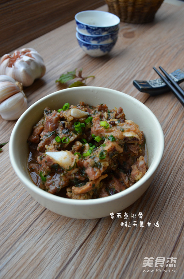用紫苏蒸排骨别有一番风味,有一点像吃田螺的感觉。这个菜好受我家小主喜爱,因为我有事忙,放学归来让他先吃饭,他开胃的连我那份饭也吃完了,然后呢自己动手重新为我煮上,呵呵。。。会煮饭的男孩都是小暖男哦!