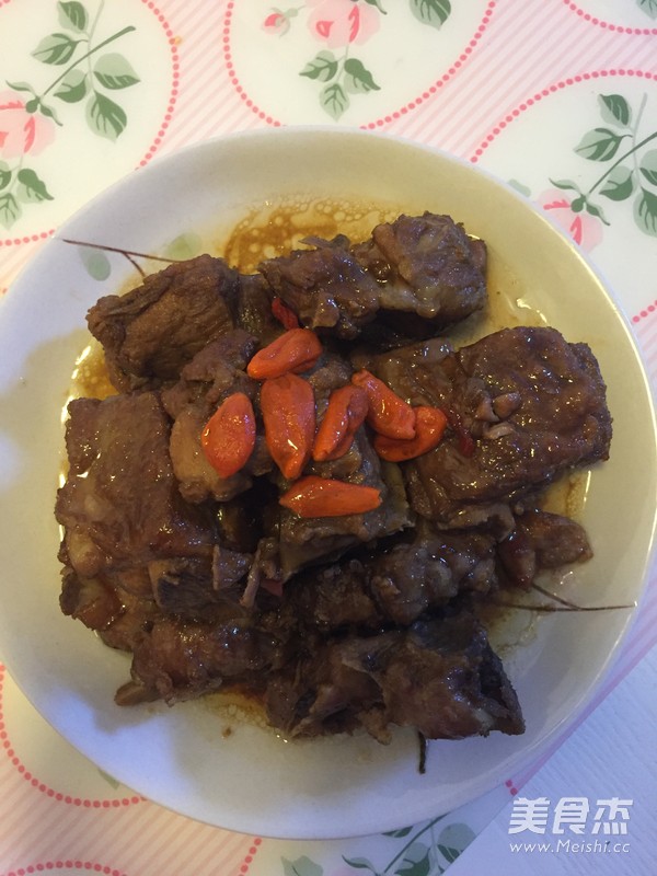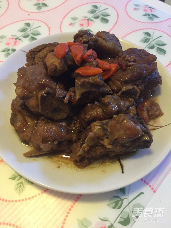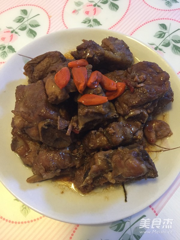 大葱1/5根 姜若干 枸杞10克 大料1个 老抽1匙 生抽1匙 白糖半匙 冰糖6颗 料酒1匙 鸡精1调料匙 食盐适量