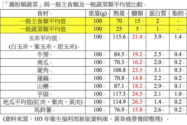 玉米、牛蒡、南瓜、菱角、莲藕、山药、芋头、地瓜、马铃薯其实是“淀粉类蔬菜”,糖类及热量相较一般蔬菜约3到5倍。