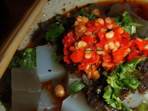 成都地区人人皆知的一款风味名菜。相传在30年代,成都少城附近,有一男子名郭朝华,与其妻一道以制售凉拌牛肺片为业,他们夫妻俩亲自操作,走街串巷,提篮叫卖。由于他们经营的凉拌肺片制作精细,风味独特,深受人们喜爱。为区别一般肺片摊店,人们称他们为"夫妻肺片"。设店经营后,在用料上更为讲究,以牛肉、心、舌、肚、头皮等取代最初单一的肺,质量日益提高。为了保持此菜的原有风味,"夫妻肺片"之名一直沿用至今。