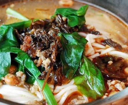 担担面是著名的成都小吃。用面粉擀制成面条,煮熟,舀上炒制的猪肉末而成。成菜面条细薄,卤汁酥香,咸鲜微辣,香气扑鼻,十分入味。此菜在四川广为流传,常作为筵席点心。 担担面中最有名的又要数陈包包的担担面了,它是自贡市一位名叫陈包包的小贩始创于1841年。因最初是挑着担子沿街叫卖而得名。过去,成都走街串巷的担担面,用一中铜锅隔两格,一格煮面,一格炖鸡或炖蹄膀。现在重庆、成都、自贡等地的担担面,多数已改为店铺经营,但依旧保持原有特色,尤以成都的担担面特色最浓。